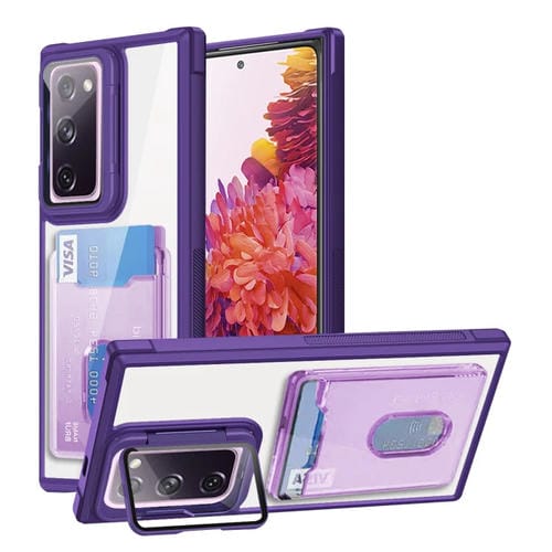 Estuche para Teléfono Samsung Galaxy S20 FE TPU Híbrido Acrílico con Soporte para Tarjeta (Púrpura)