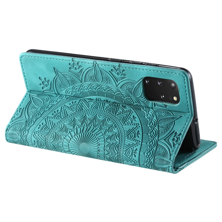 Funda de Cuero Magnética Totem para Samsung Galaxy S20 en Relieve (Verde)