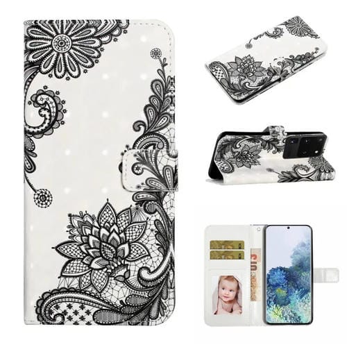 Funda de Teléfono Samsung Galaxy S20 Ultra Cuero Dibujo 3D Relieve al Óleo (Flor de Encaje)