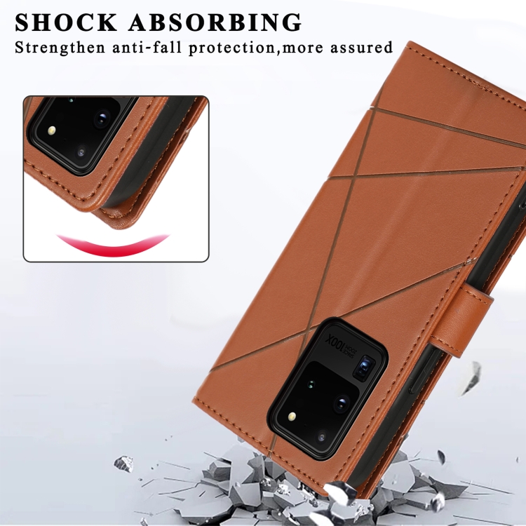 Funda para Teléfono Samsung Galaxy S20 Ultra Pu con Línea En Relieve y Textura de Cuero Genuino (Marrón)