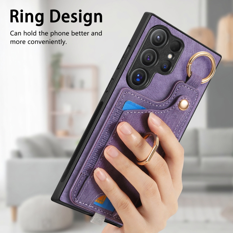 Funda para Teléfono Samsung Galaxy S21 5G con Bolsa para Tarjeta Anillo y Lazo (Púrpura)