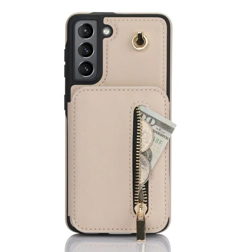 Estuche para Teléfono Samsung Galaxy S21 5G Ym006 con Bolsa para Tarjetas Cremallera y Cordón Doble (Albaricoque)