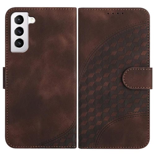 Funda de Cuero Samsung Galaxy S21 5G Yx0060 con Relieve y Cabeza de Elefante con Cordón (Café)