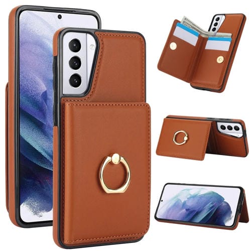 Estuche para Teléfono Samsung Galaxy S21 FE 5G Rfid Tarjeta Antirrobo con Soporte para Anillo (Marrón)