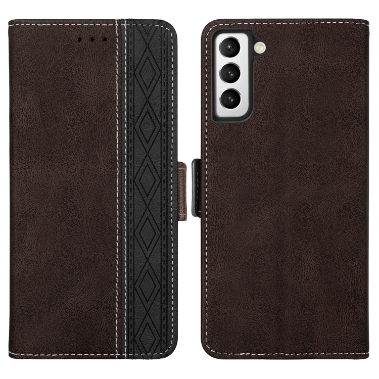 Funda para Samsung Galaxy S21 FE 5G Stitching Side-Magnetic Rfid Caja de Cuero (Café)