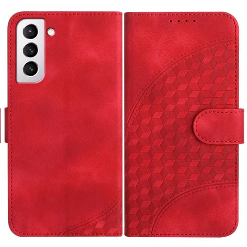 Funda de Cuero Samsung Galaxy S21 FE 5G Yx0060 con Relieve y Cabeza de Elefante con Cordón (Rojo)