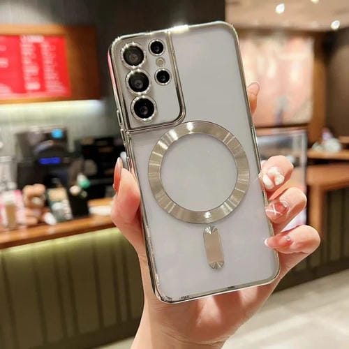 Estuche para Teléfono Samsung Galaxy S21 Ultra 5G TPU con Galvanoplastia Magsafe (Plateado)