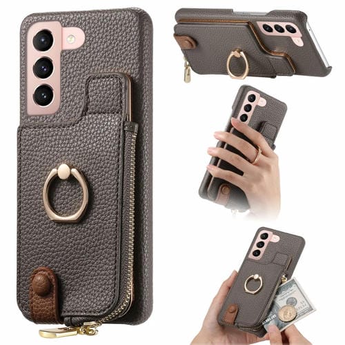 Funda para Teléfono Samsung Galaxy S21 Ultra 5G Litchi Leather Oil Edge Ring Zipper Wallet Back (Gris)