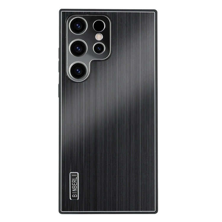 Estuche híbrido para Samsung Galaxy S21 Ultra 5G de aleación de aluminio cepillado a prueba de golpes (Negro)