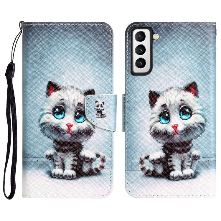 Para Samsung Galaxy S22 5G Estuche para teléfono de cuero con dibujo coloreado (ojos azules)