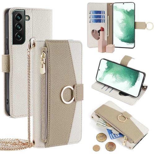Funda para Teléfono Samsung Galaxy S22 + 5G Cuero Textura Litchi Cruzada (Blanco)