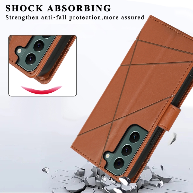 Funda para Teléfono Samsung Galaxy S22 + 5G Pu con Línea en Relieve y Textura de Cuero Genuino (Marrón)