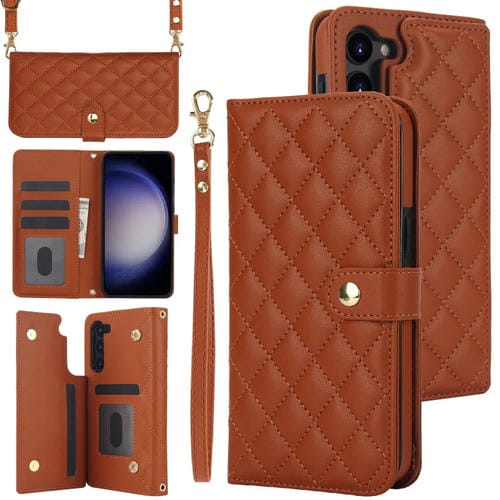 Estuche para Teléfono Samsung Galaxy S23 5G Crossbody Cuero Rómbico Multifunción (Marrón)