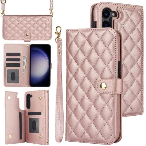 Estuche para Teléfono Samsung Galaxy S23 5G Crossbody Cuero Rómbico Multifunción (Oro Rosa)