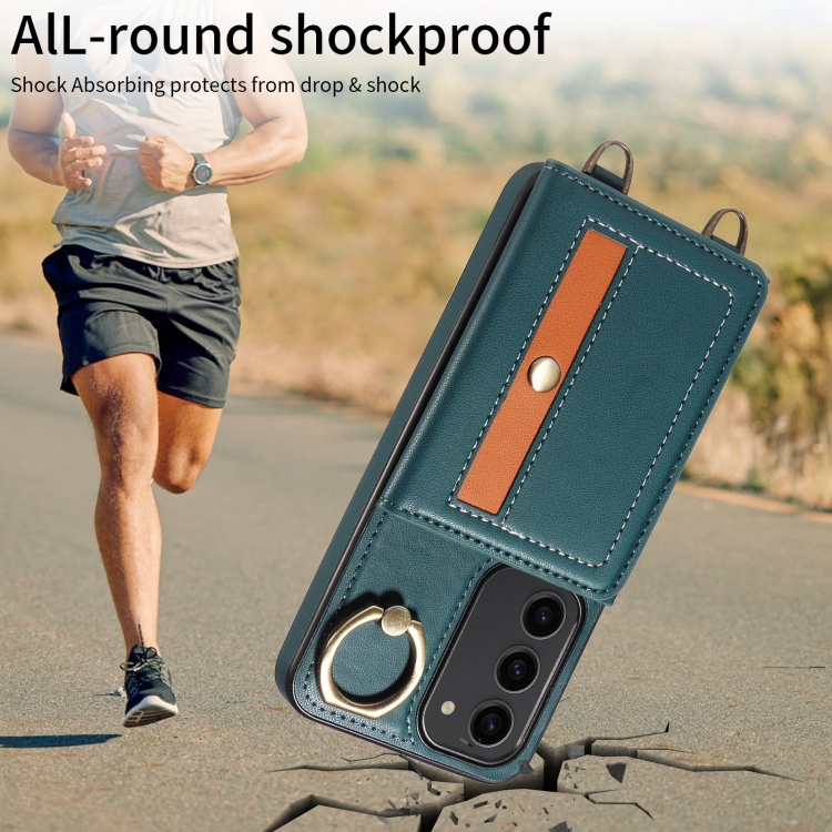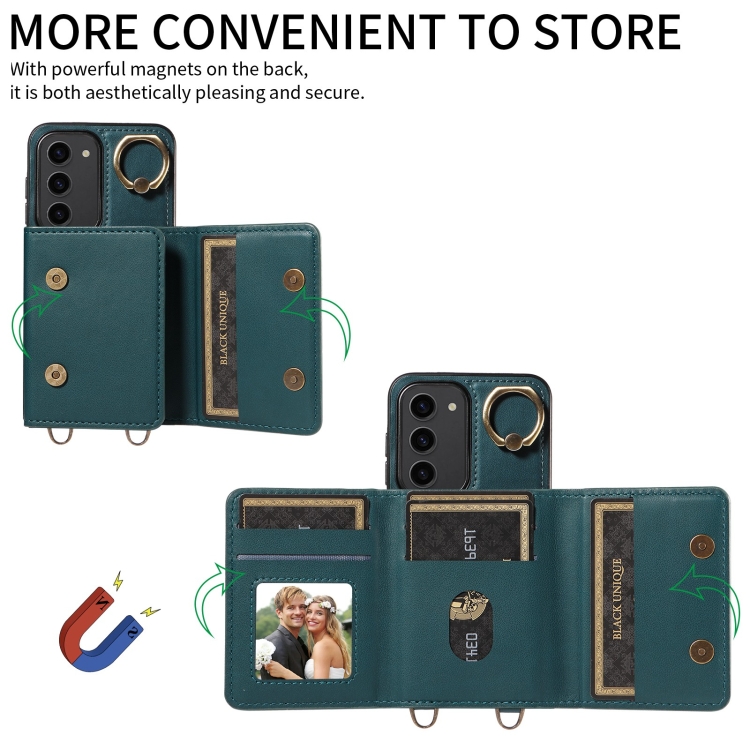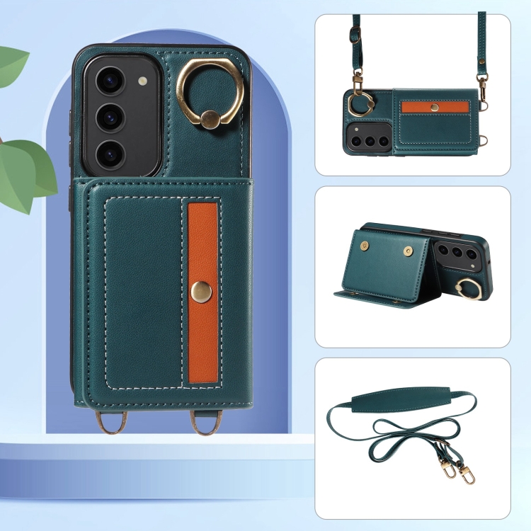 Funda para Samsung Galaxy S23 5G Crossbodys Wallet Bag Ring Holder de Cuero (Verde)