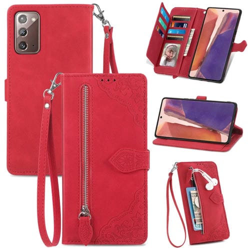 Funda de Cuero Samsung Galaxy S24+ 5G con Cremallera y Flores en Relieve (Rojo)