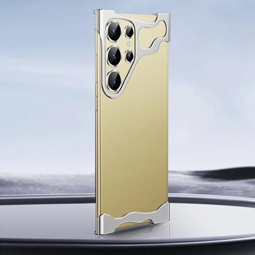 Estuche para Teléfono Samsung Galaxy S24 Ultra 5G con Almohadilla de Esquina de Metal sin Marco y Película para Lentes (Plateado)