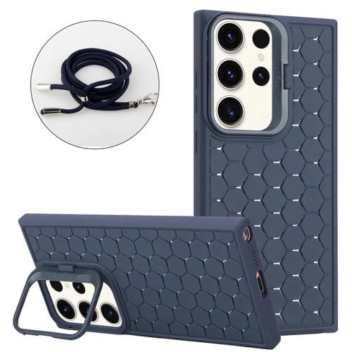 Estuche para Teléfono Samsung Galaxy S24 Ultra 5G Magsafe con Soporte para Lente Panal con Cordón (Azul)
