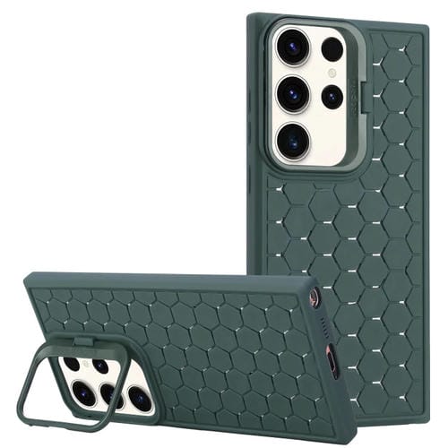 Estuche para Teléfono Samsung Galaxy S24 Ultra 5G Magsafe con Soporte para Lente Radiante en Forma de Panal (Verde)