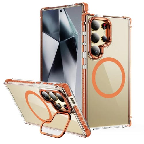 Estuche para teléfono Samsung Galaxy S24 Ultra 5G Rainbow Series con soporte para lente Magsafe (Naranja)