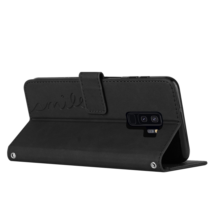 Funda de Cuero Samsung Galaxy S9+ Skin Feel Heart Pattern con Cordón (Negro)