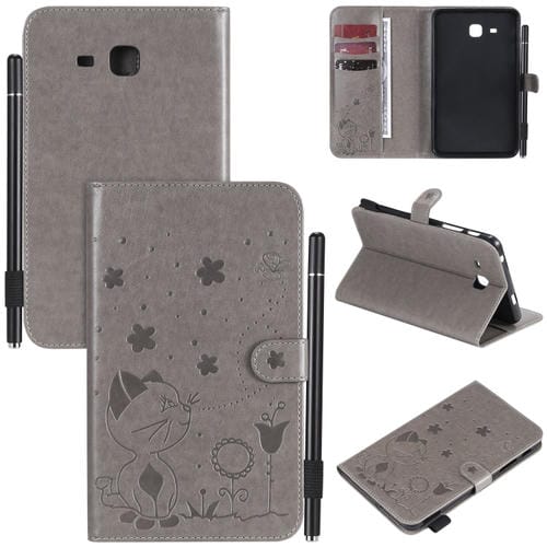 Funda Protectora de Cuero Samsung Galaxy Tab A7.0 T280 Estampado Abeja Gato Soporte Ranuras Tarjetas Billetera Lápiz (Gris)