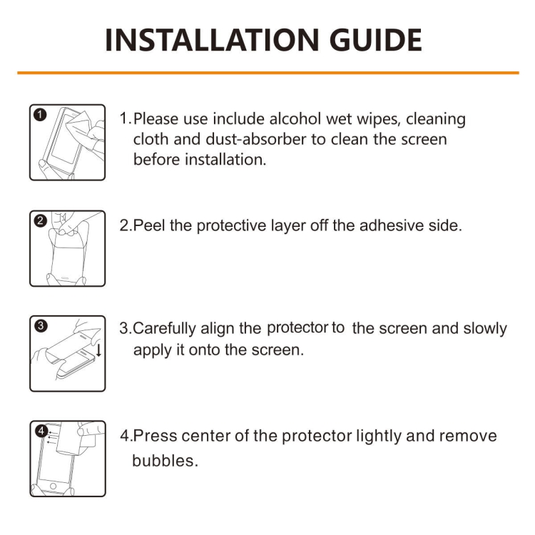 4. Funcional. El protector de la pantalla puede adaptarse bien a su teléfono y hacer una gran diferencia en proteger su teléfono desde cero, huella digital, agua, aceite, polvo, choque, deslizamiento, etc., cuando se mancha con agua, tierra, barro, aceite u otros accesorios, TI, TI. se puede limpiar sin esfuerzo.