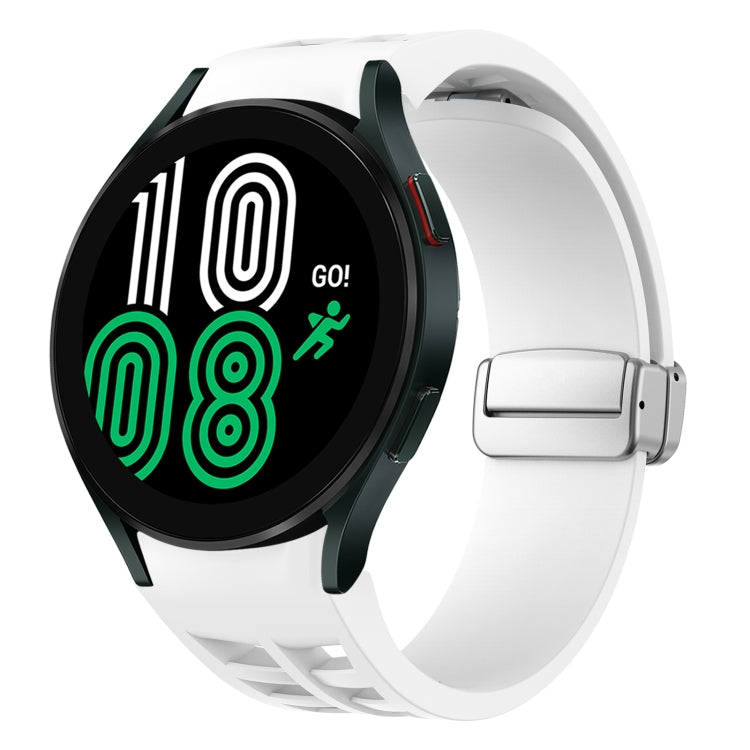 Pour Samsung Galaxy Watch 4 40/44 mm Bracelet de montre en silicone Richard avec boucle argentée pliante magnétique (blanc)