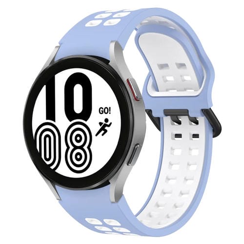 Banda de Reloj de Silicona para Samsung Galaxy Watch 4 44mm Transpirable Dos Colores (Azul Claro + Blanco)