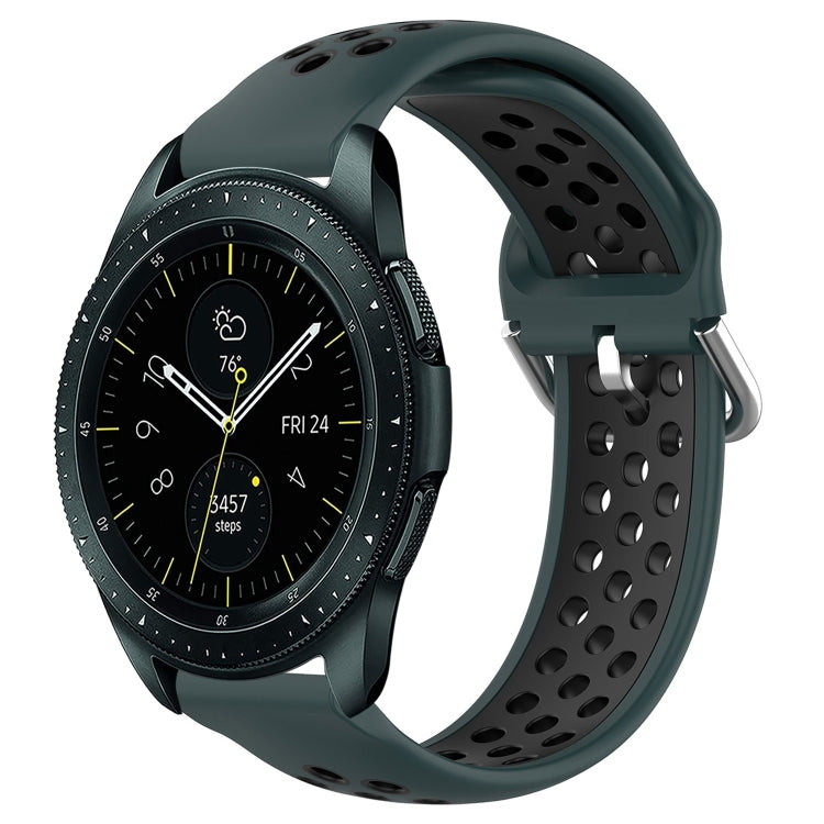 Banda de Reloj para Samsung Galaxy Watch 42mm 20mm silicona deportiva transpirable perforada (Verde oliva + Negro)