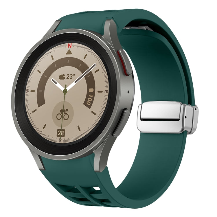 Correa de Silicona para Samsung Galaxy Watch 5 Pro 45mm Richard con Hebilla Plateada Plegable Magnética (Verde Oscuro)