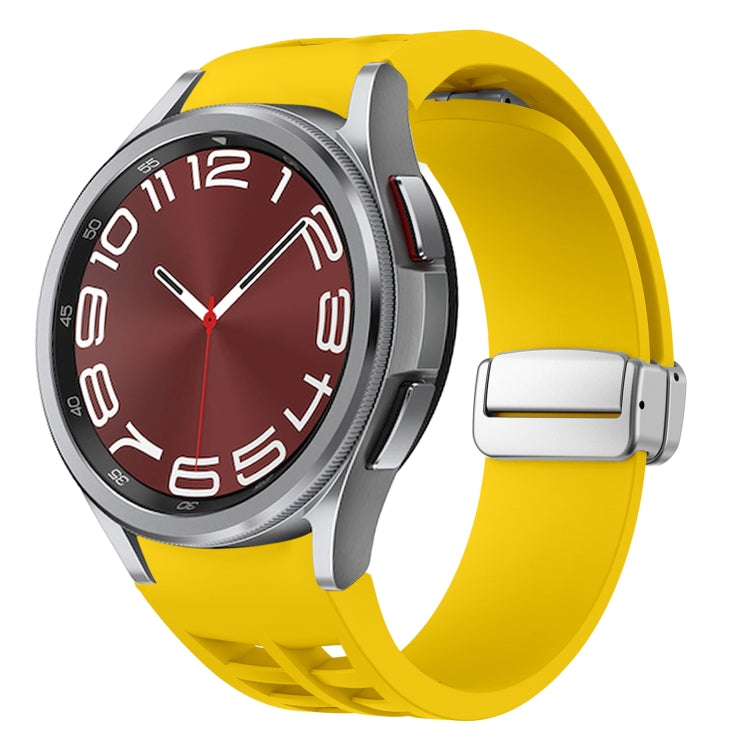 Pour Samsung Galaxy Watch 6 Classic 43/47 mm Richard Silicone Watch Band avec boucle argentée pliante magnétique (jaune)