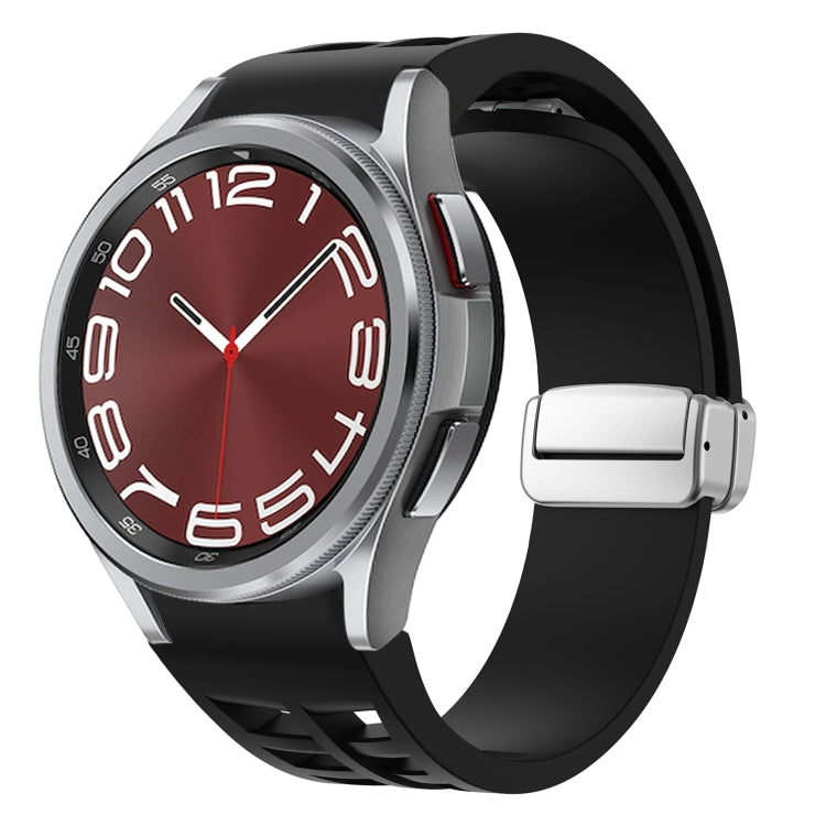 Correa de Silicona para Samsung Galaxy Watch 6 Classic 43/47mm con Hebilla Plateada Plegable Magnética (Negro)