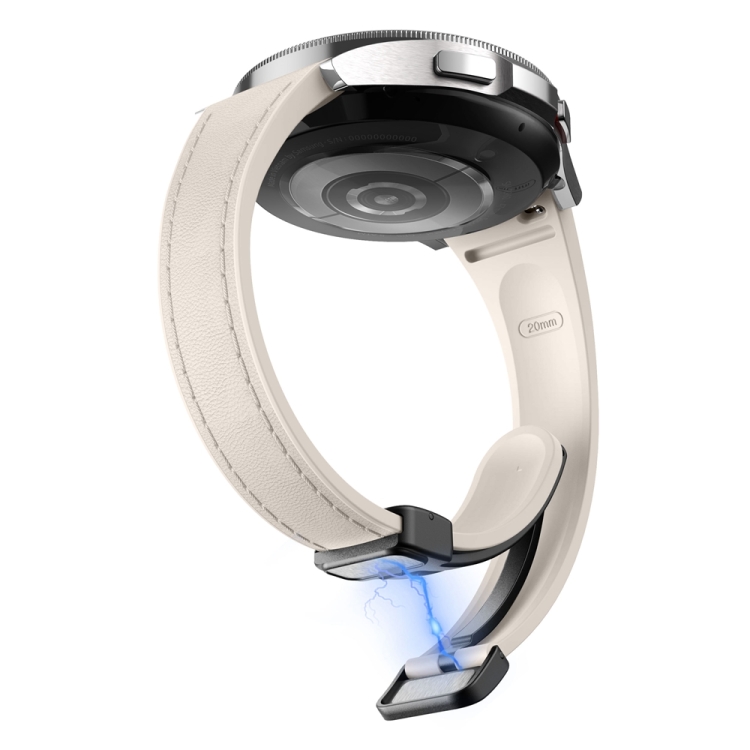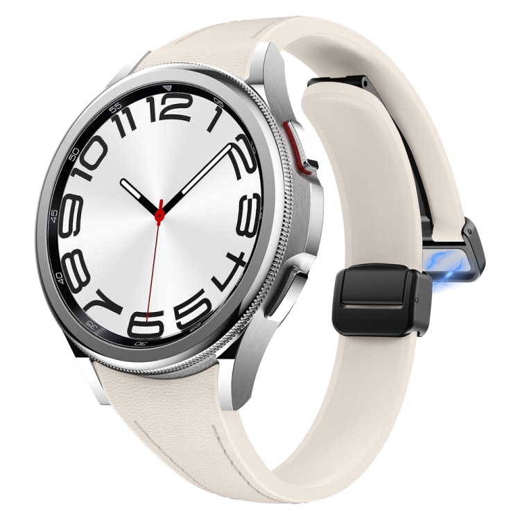 Correa de Silicona y Cuero para Samsung Galaxy Watch 6 con Hebilla Magnética Negra (Luz de Estrella)
