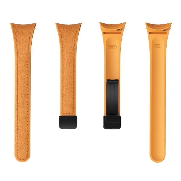 Correa de Silicona y Cuero para Samsung Galaxy Watch 6 con Hebilla Magnética Negra Delgada (Marrón Claro)