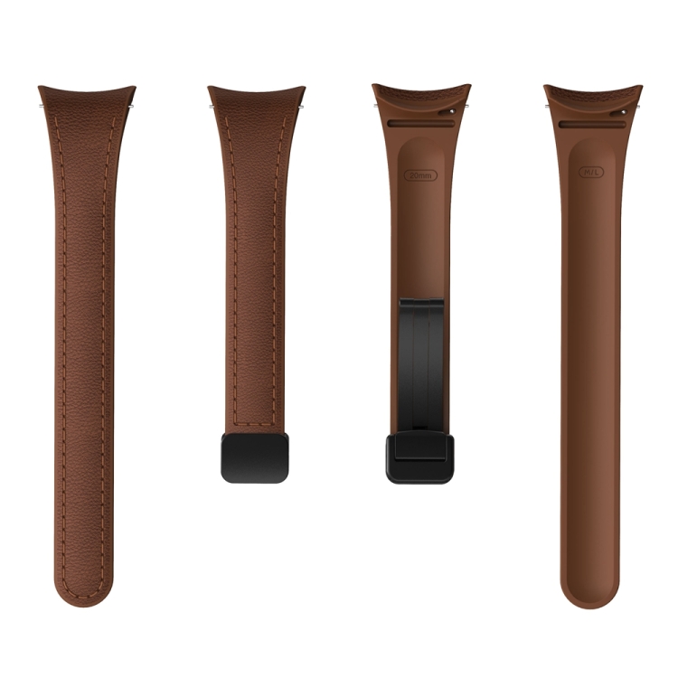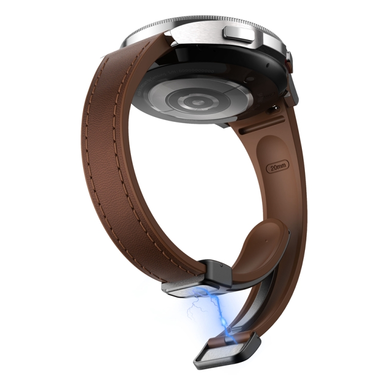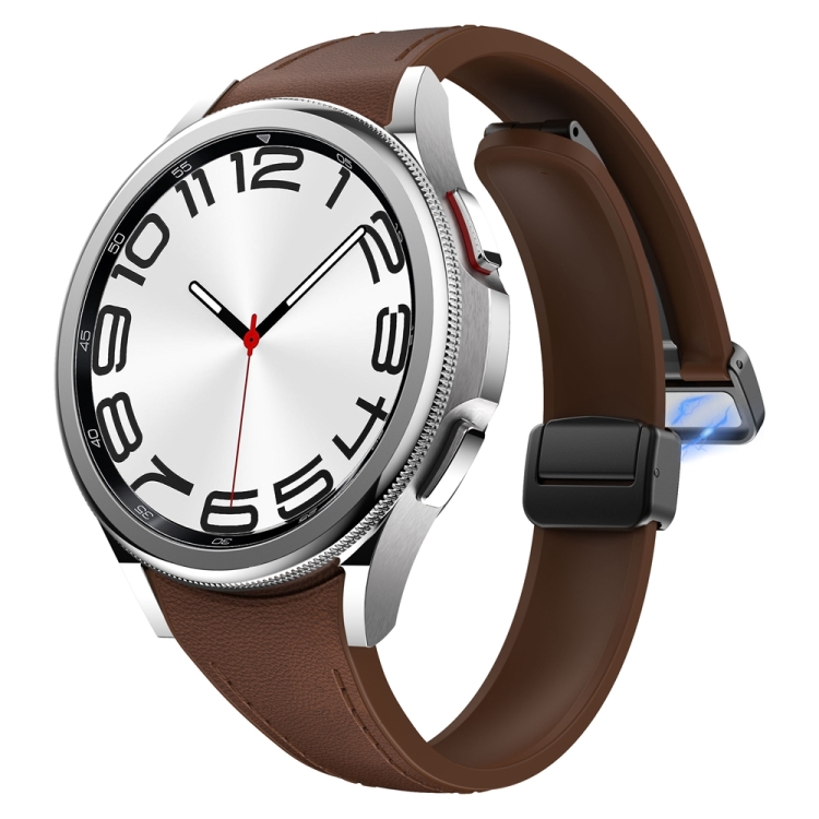 Correa para Samsung Galaxy Watch 6 de Silicona y Cuero con Hebilla Magnética Delgada (Marrón Oscuro)