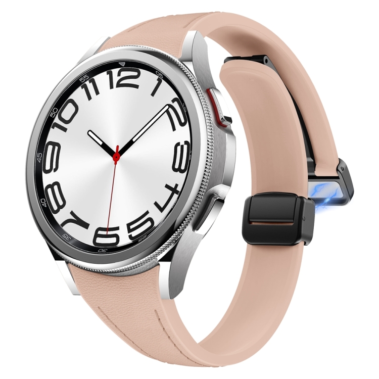 Correa de Silicona y Cuero para Samsung Galaxy Watch 6 con Hebilla Magnética Negra (Rosa)