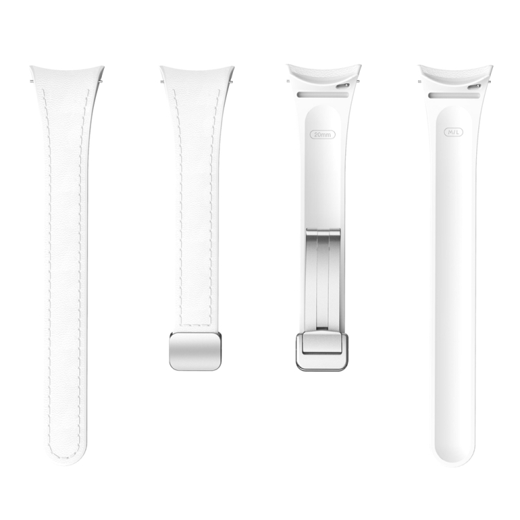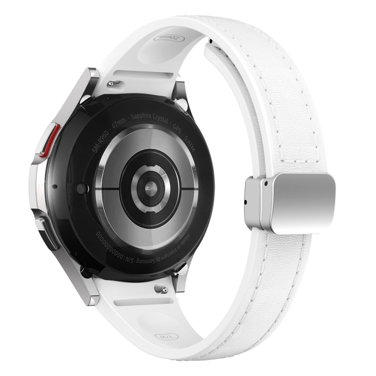 Correa para Samsung Galaxy Watch 6 de Silicona y Cuero con Hebilla Plateada Magnética Delgada (Blanco)