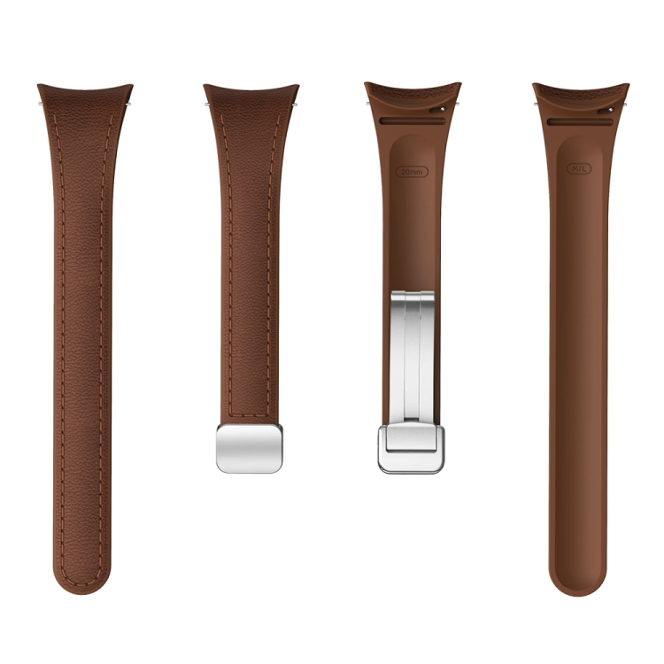 Correa para Samsung Galaxy Watch 6 de Silicona y Cuero con Hebilla Magnética Delgada (Marrón Oscuro)