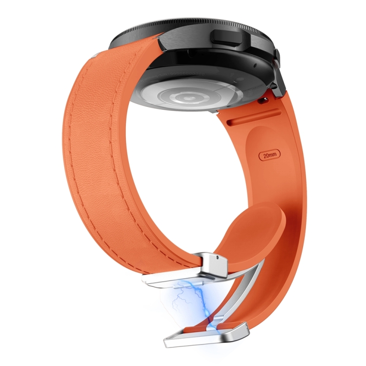 Correa para Samsung Galaxy Watch 6 de Silicona y Cuero con Hebilla Magnética (Naranja)