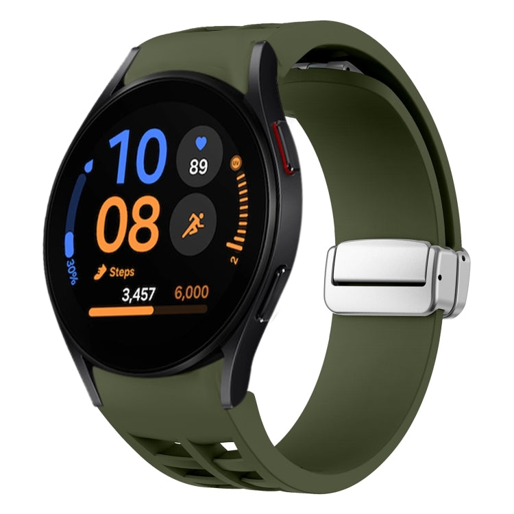 Correa de Silicona para Samsung Galaxy Watch FE 40mm Richard con Hebilla Plateada Plegable Magnética (Verde Militar)