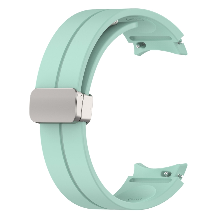 Correa de Silicona para Samsung Galaxy Watch FE con Hebilla Plateada Plegable Magnética (Verde Azulado)