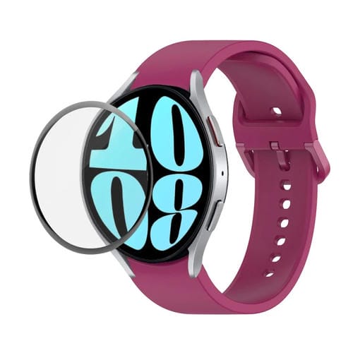 Correa Ajustable de Silicona para Samsung Galaxy Watch6 44mm Junsunmay + Protector de Pantalla Pmma (Rojo Vino)
