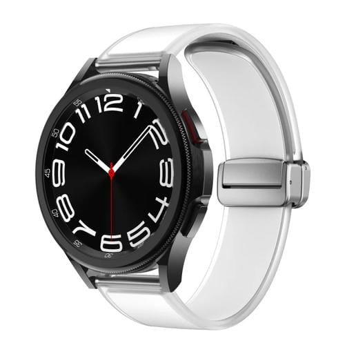 Correa de Silicona para Samsung Galaxy Watch6/5/4 con Hebilla Magnética Plateada Translúcida (Blanco)