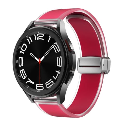 Correa de silicona para Samsung Galaxy Watch6/5/4 con hebilla plateada magnética translúcida (Magenta)