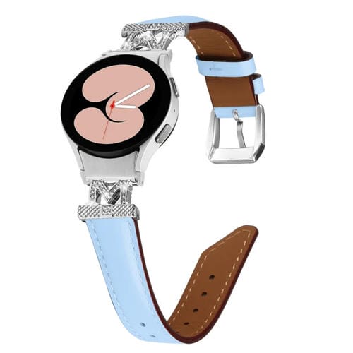 Correa de Reloj para Samsung Galaxy Watch6/6 Classic M Letra D Cuero de Sarga (Azul Plateado)