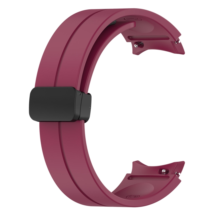 Correa de Silicona para Samsung Galaxy Watch7 40/44mm con Hebilla Negra Plegable Magnética (Rojo Vino)