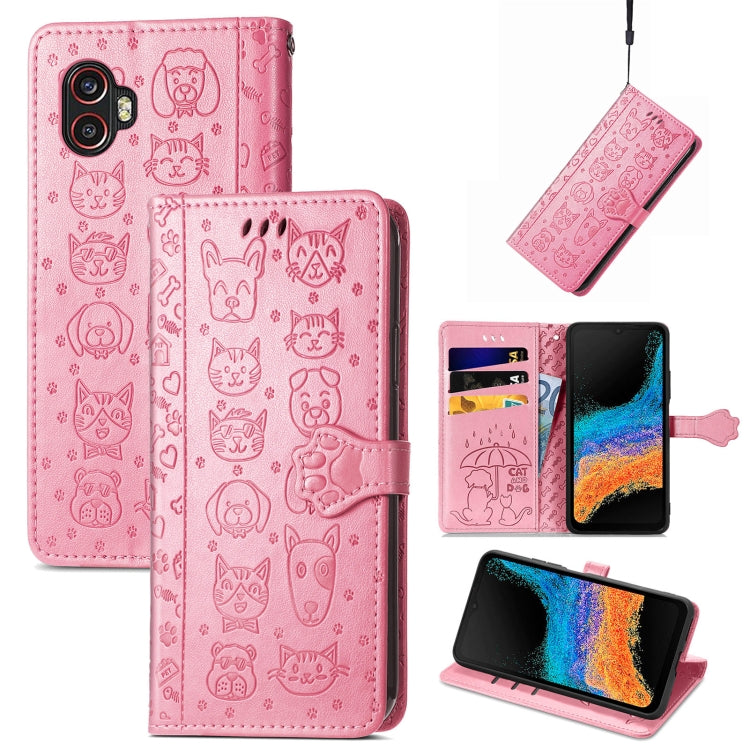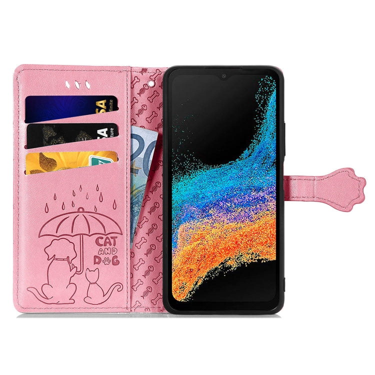 Estuche de Cuero Samsung Galaxy Xcover6 Pro Cute Cat And Dog en Relieve (Rosa)