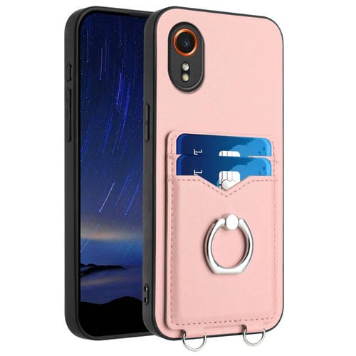 Estuche para Teléfono Samsung Galaxy Xcover7 R20 con Soporte para Tarjeta con Anillo (Rosa)