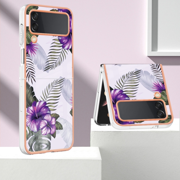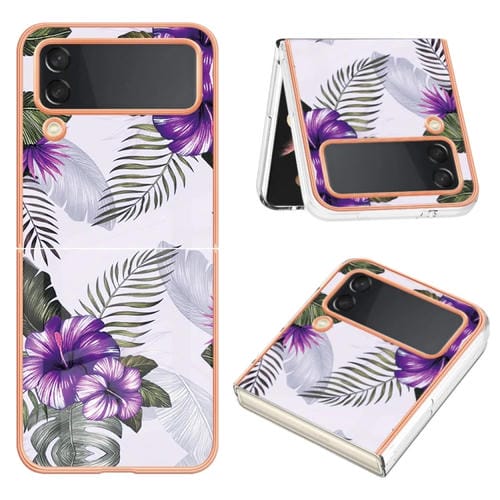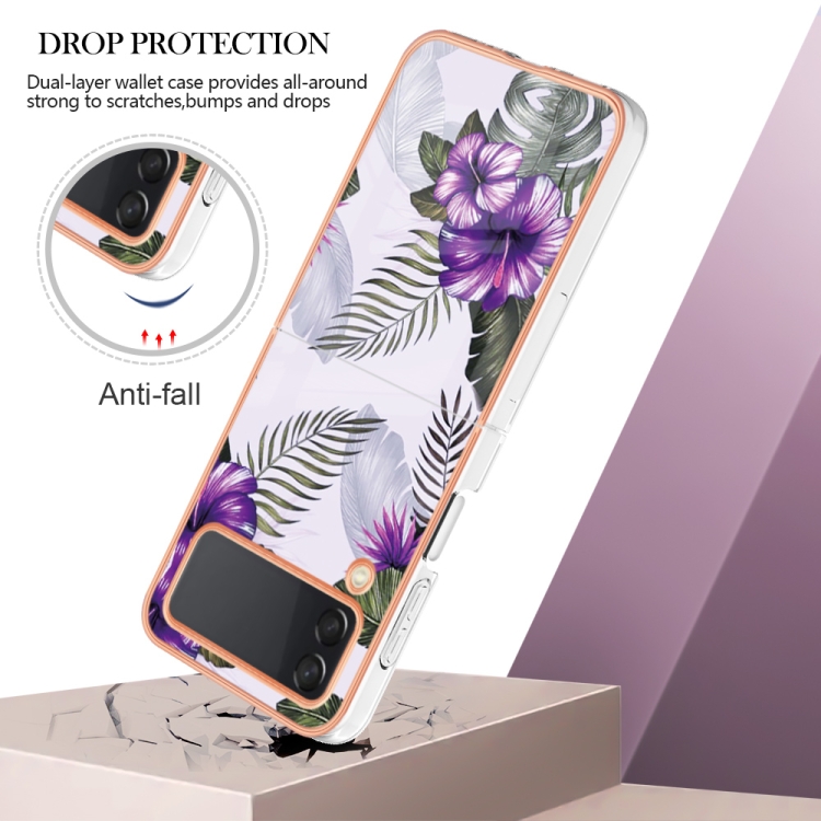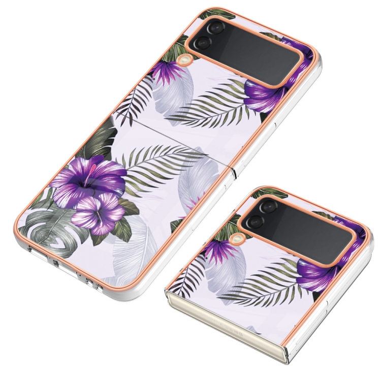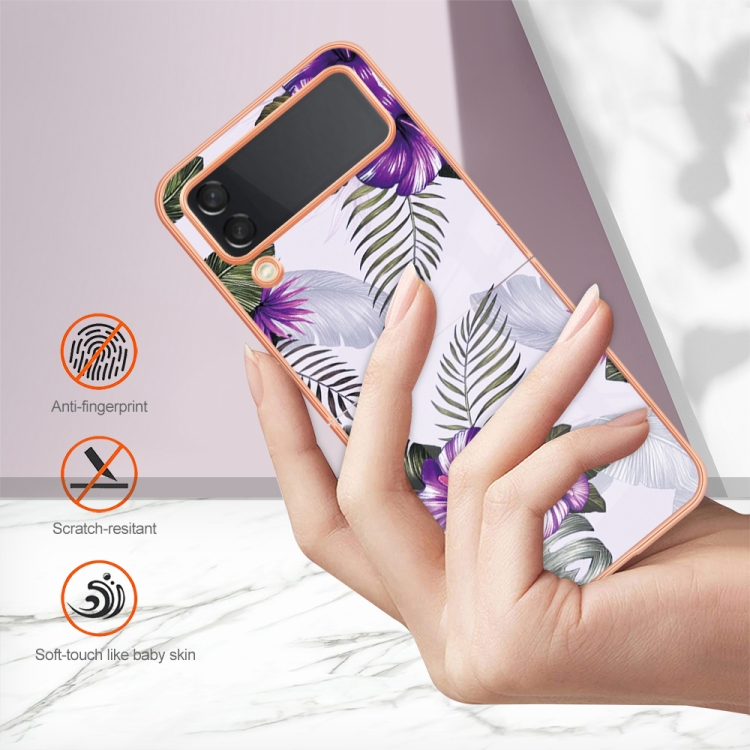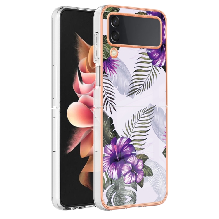 Caja de teléfono Samsung Galaxy Z Flip3 5G Imd TPU con Galvanoplastia (Flor Púrpura)